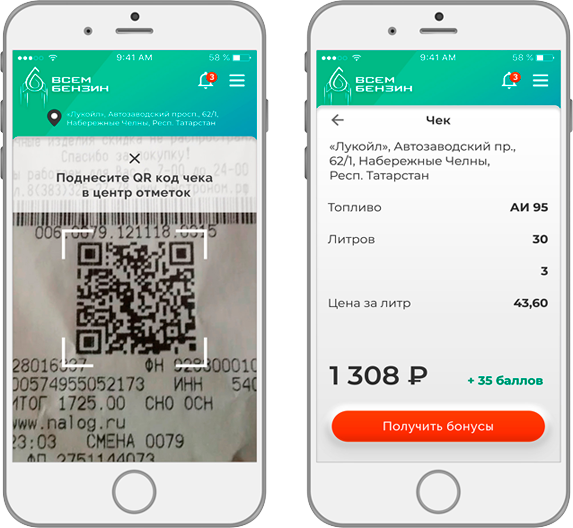 Клиент может отсканировать чек и получить бонусы с любой покупки.